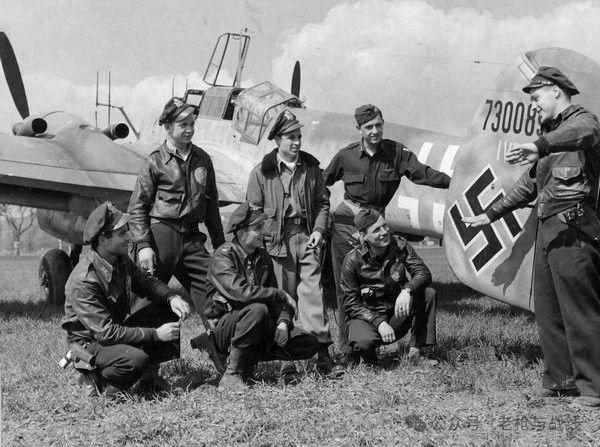 美国陆航第379和役机中队的飞翔员正在俘获的德军Bf 110G-4/R3夜间和役机前留影,罗伯特·S·哈根中尉正正在向和友们描述最初一次空和的过程,1945年5月摄于某地。 没错,这就是摆拍,但胜利者有这个摆拍资历,他们想怎样拍就怎样拍。